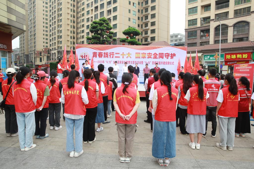 为深入学习贯彻党的二十大精神,弘扬爱国主义主旋律,牢固树立总体国家安全观在新时代国家安全工作中的指导地位,结合党旗领航群团联动,实现校地共建融合发展,资源共建共享。4月14日上午,必赢国际bwin联合玉州区江南街道办事处在玉州区南兴广场举行青春践行二十大·国家安全同守护——2023年“4.15”全民国家安全教育日暨“4+N”团建联盟共建授旗仪式。