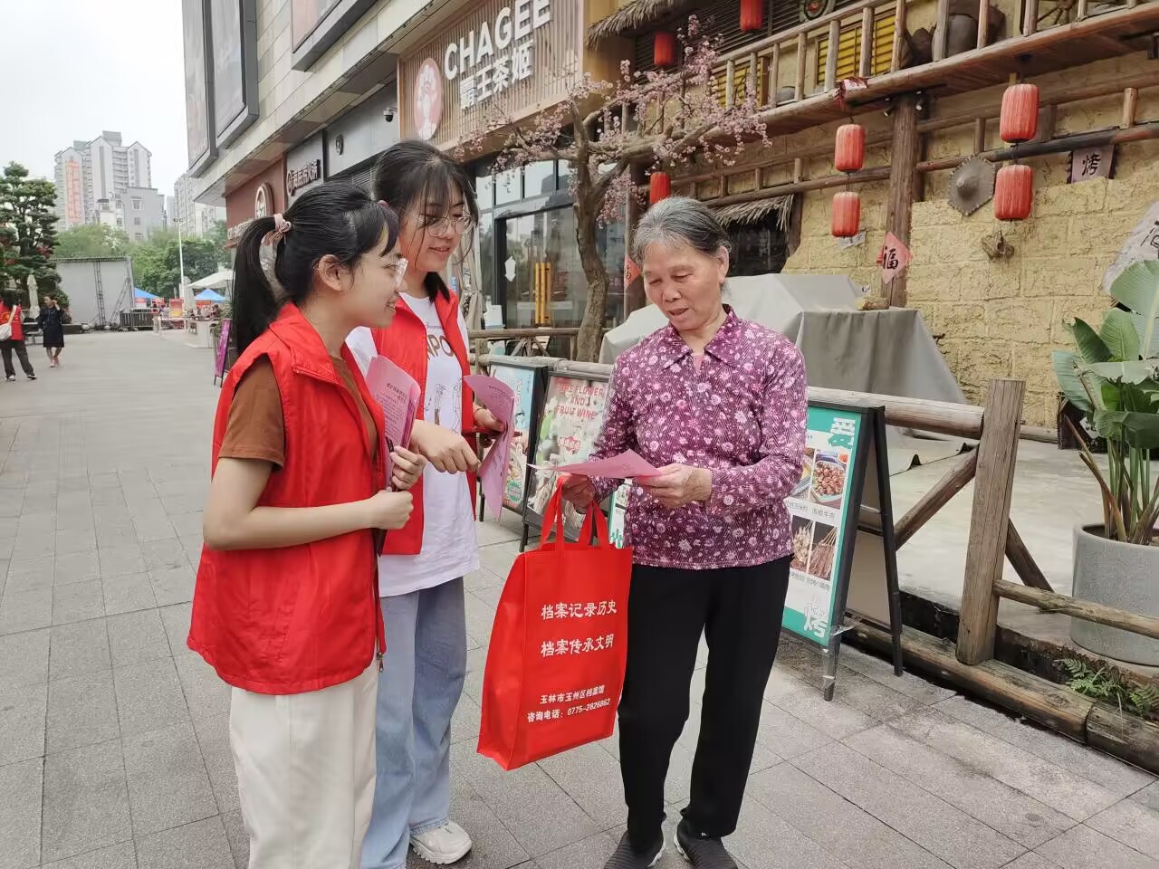 必赢国际bwin党委副书记覃艳超、必赢国际bwin团委副书记董积有、江南街道人大工委主任李军、玉州区团委书记黄思晧、必赢国际bwin团委书记陈祉宇、江南街道团工委书记曾凡青出席本次活动。玉林市第三人民医院、柳州银行玉林分行、中建七局项目部等9个单位,100多名青年志愿者参加本次活动。