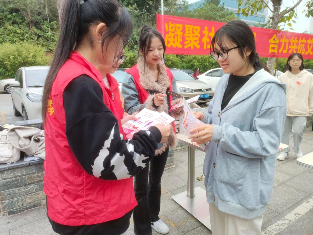 活动现场,与会同志来到食府门口,通过放置展架、发放防艾宣传单、现场咨询、知识竞答等形式,向学生们宣传艾滋病对社会、家庭、校园和个人造成的危害、传播途径以及如何预防等方面的知识,提高学生们防治艾滋病的意识和能力,倡导文明的生活方式,养成健康的生活习惯,学生们积极参与现场氛围十分热烈。据了解,此次活动共发放防艾宣传单180余份,现场参与知识竞答与咨询50余人。