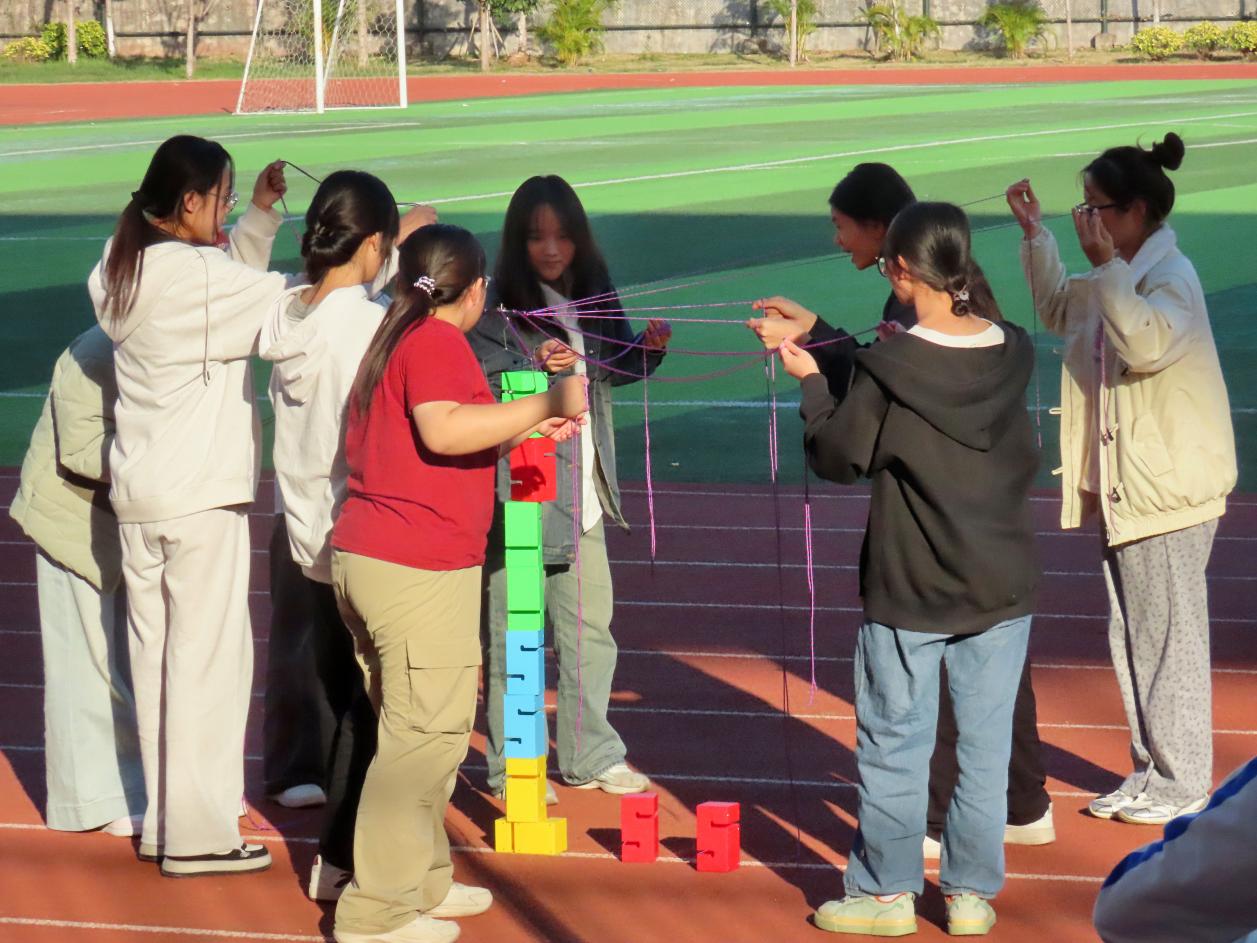 本次活动以趣味游戏形式展开,设有“合力搭塔”“纵横天下”两个项目。随机分组后,各组成员积极讨论策略,优化分工,齐心协力,保持着积极向上的态度,不断尝试、不断突破,在紧张的氛围中,每个成员都展现出非凡的专注力和团队协作能力。