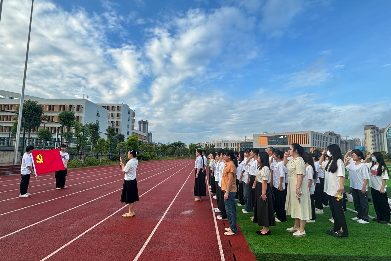升旗仪式结束后,全体师生党员在党旗下重温入党誓词,以铮铮誓言迎“七一”,用实际行动向党献礼。