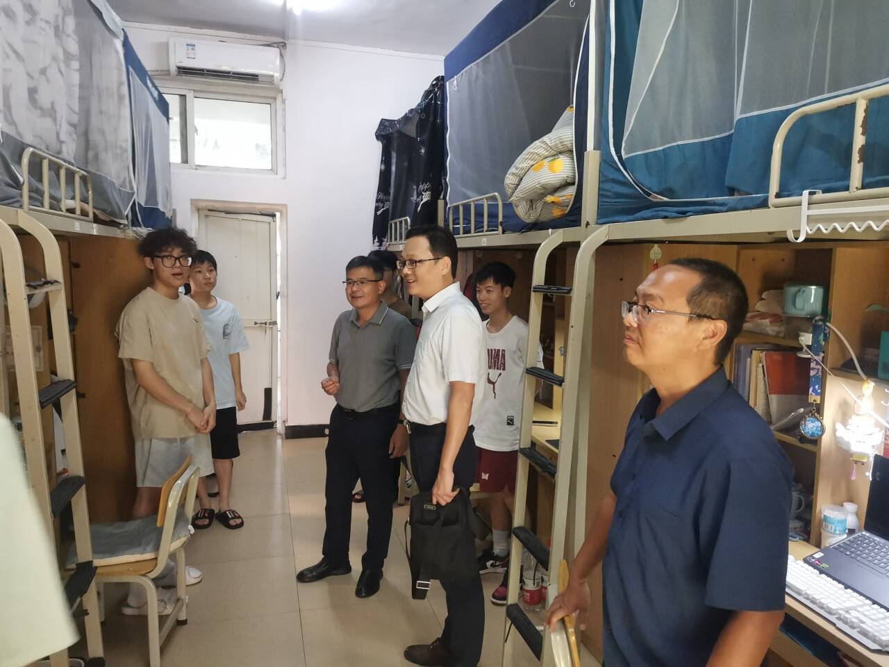 为进一步了解老生返校及住宿生活情况,切实做好新学期学生管理服务工作,9月1日下午,必赢国际bwin领导班子成员、辅导员和班主任深入走访学生宿舍,并开展宿舍安全隐患排查工作。