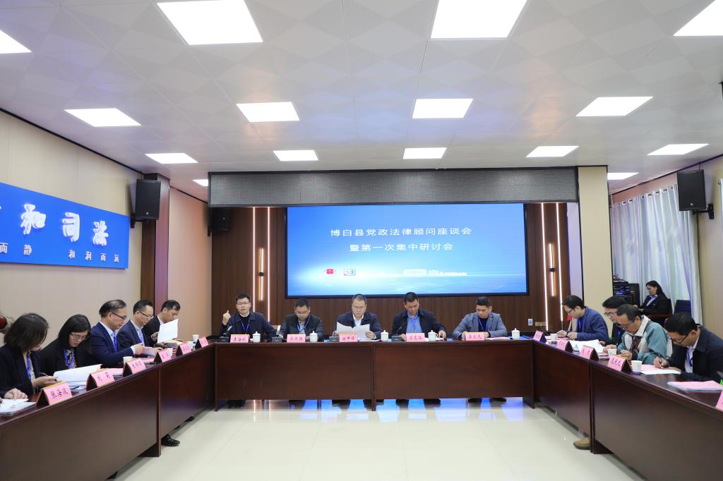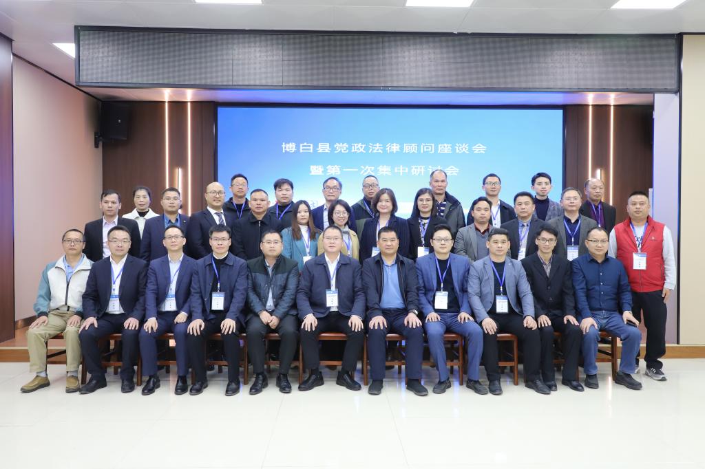 2月25日上午,必赢国际bwin院长周伟萌协同必赢国际bwin教师彭本利、庞庆龙、朱顺应邀参加了“博白县党政法律顾问座谈会暨第一次集中研讨会”。县委常委、政法委书记谢甲锋,副县长、县公安局局长梁慈猛等博白县党政领导及来自北京、广州、深圳、南宁、玉林等地的法律顾问三十余人参加本次会议。